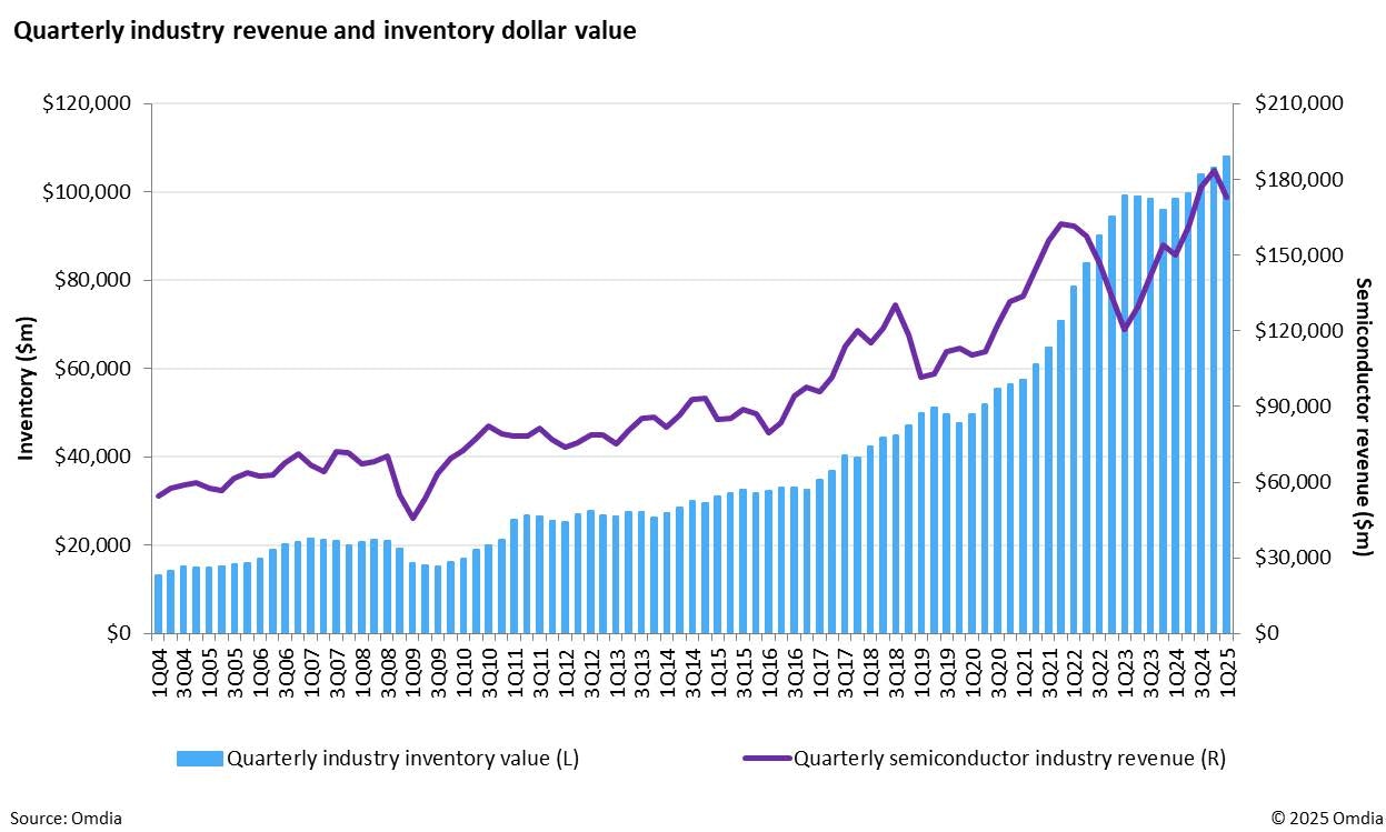 儘管純晶圓代工產業的產能利用率持續處於較低水準,但在AI強勁需求的帶動下,以及年初傳統淡季對營收的影響下,全球半導體庫存水位仍持續攀升。