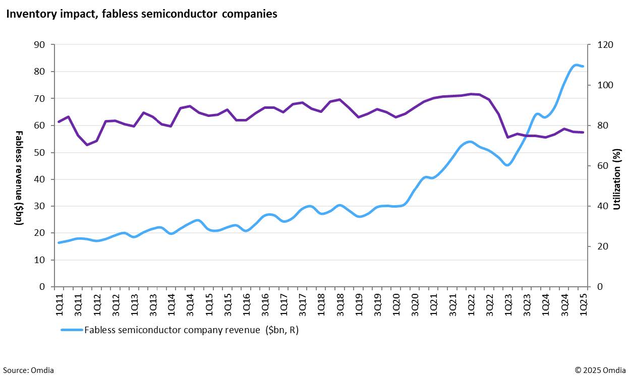 AI需求強勁難掩淡季影響,純晶圓代工產能利用率低迷、全球庫存續升